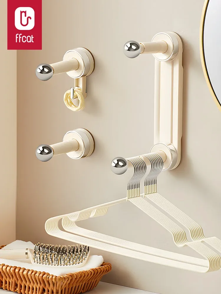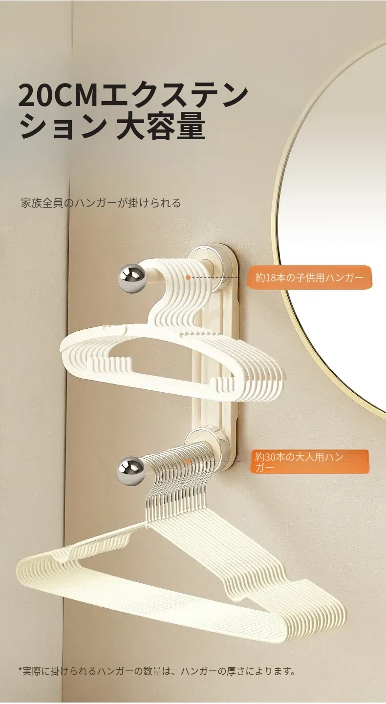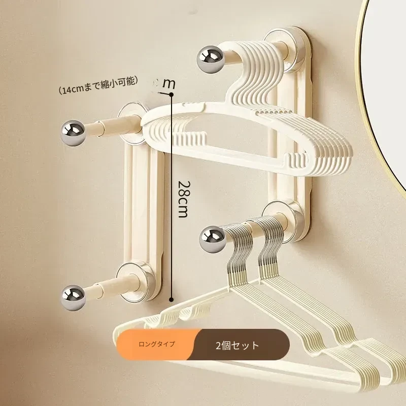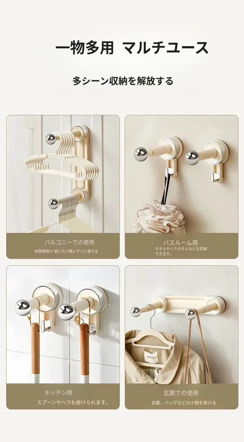 吸盤式壁掛け衣類ハンガー収納グッズ - 家庭用バルコニーにぴったり!穴あけ不要で簡単取り付け、洗濯物をすっきり整理できる便利なアイテムです。