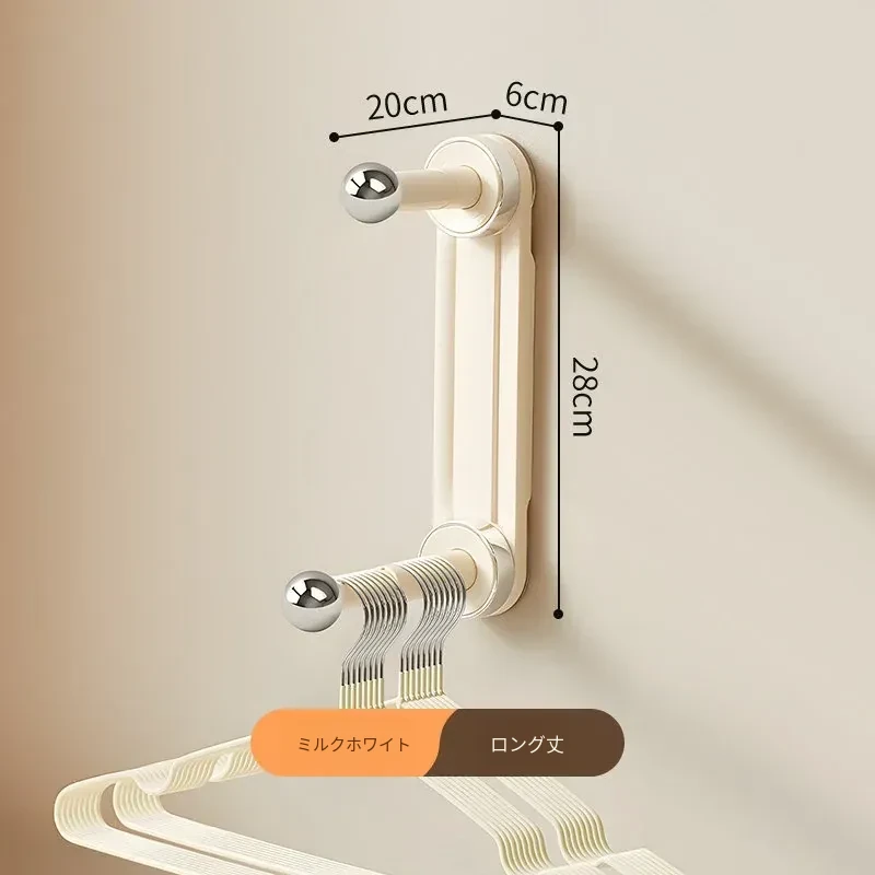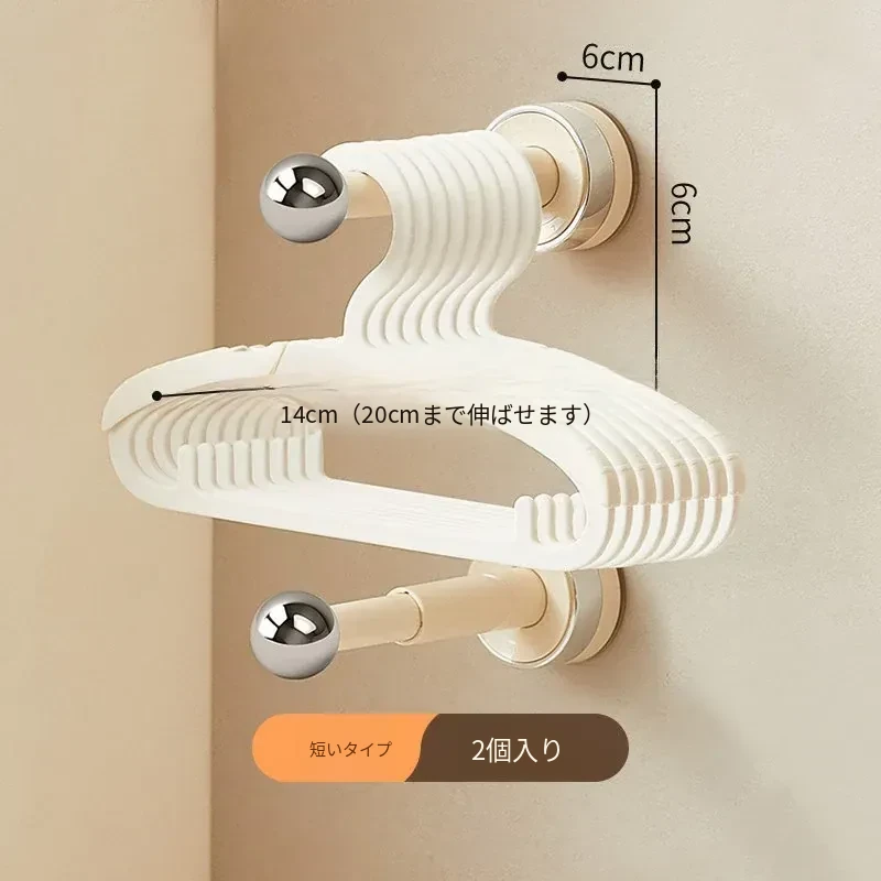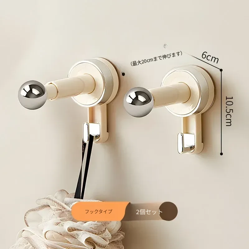 【ミルクホワイト-アップグレードフックタイプ】吸盤単杆ハンガー収納ラック(2個入り)