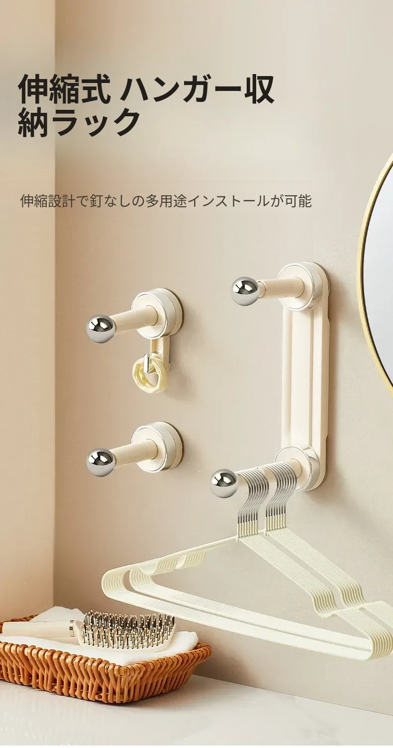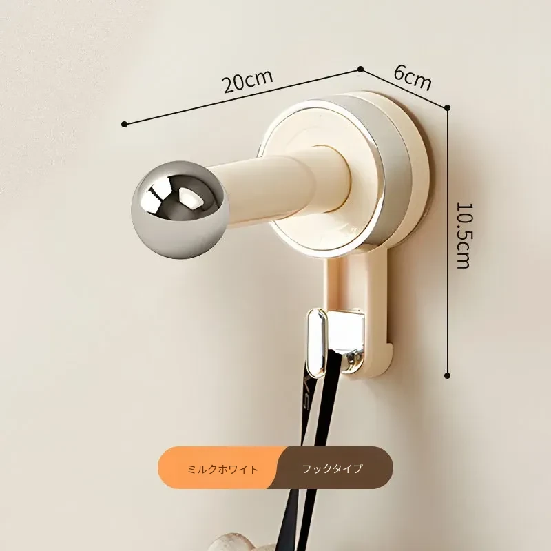 【ミルクホワイト-アップグレードフックタイプ】吸盤単杆ハンガー収納ラック(1個入り)