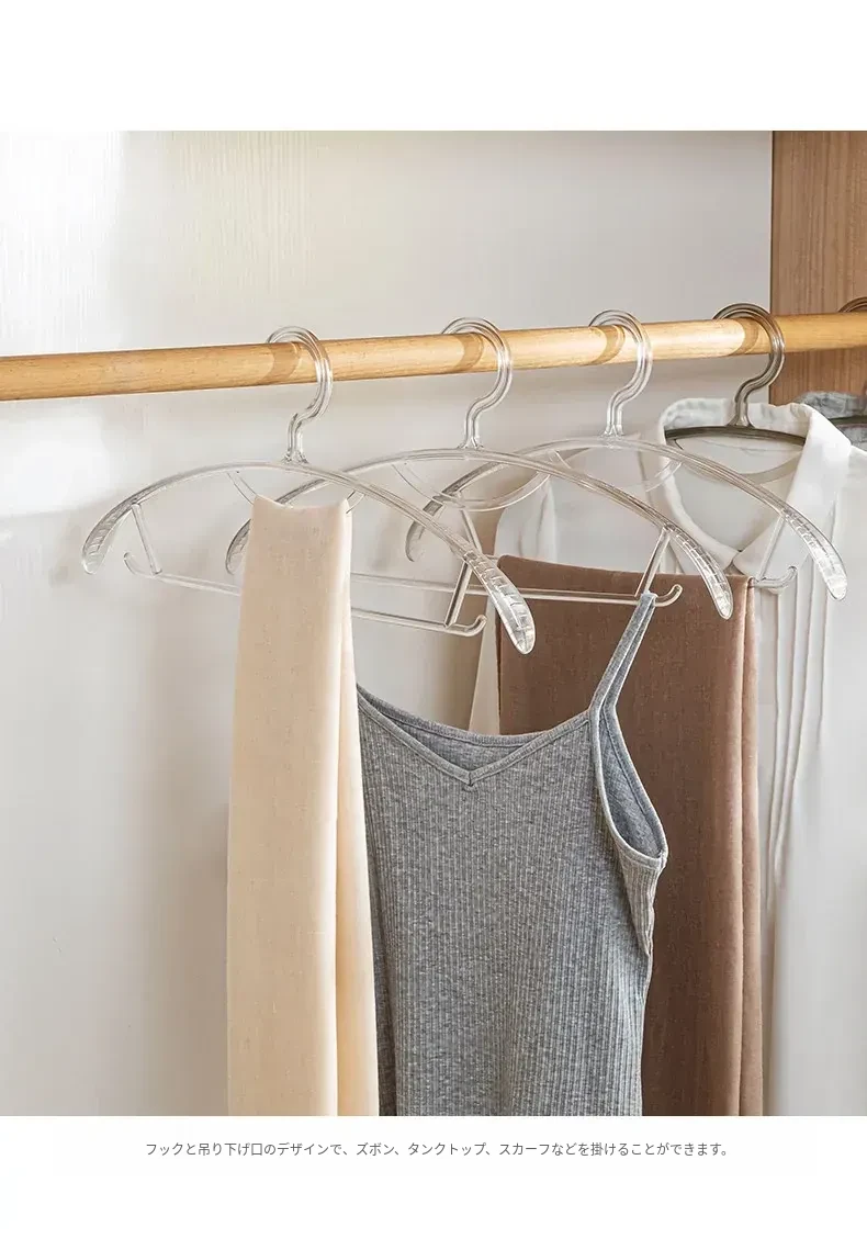 透明アクリルハンガー 無痕防止肩角 家庭用 滑り止めクローゼット衣類干し 水晶ハンガー しわにならない!おしゃれで実用的な収納アイテム、衣類を美しく保つための必需品です!