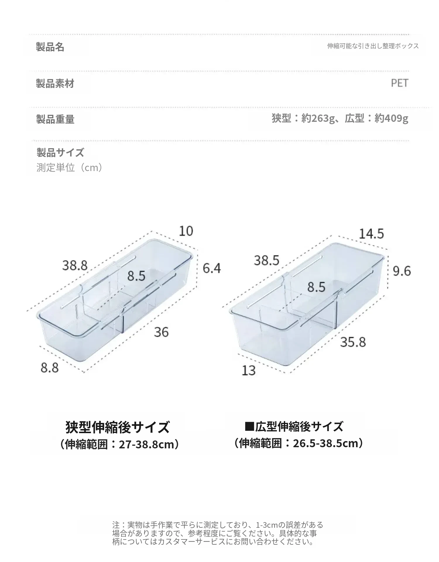 狭型1個セット✅伸縮可能/取り外し可能な仕切り