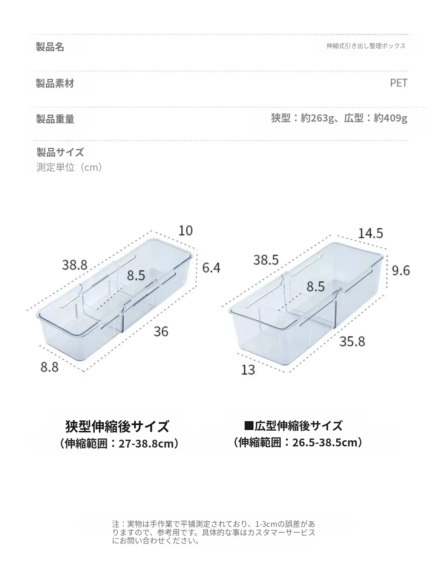 狭いタイプ2個セット✅伸縮可能/取り外し可能な仕切り