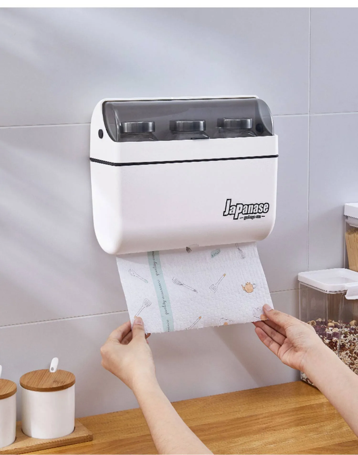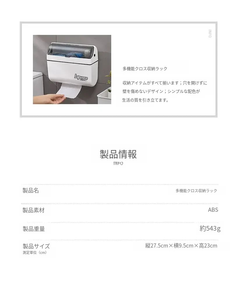 キッチン用壁掛けペーパータオルホルダー - 取り付け不要でスッキリ収納!使い捨てクロスやキッチンペーパー、調味料ボトルを整理整頓。スペースを有効活用し、料理をもっと楽しく快適に!