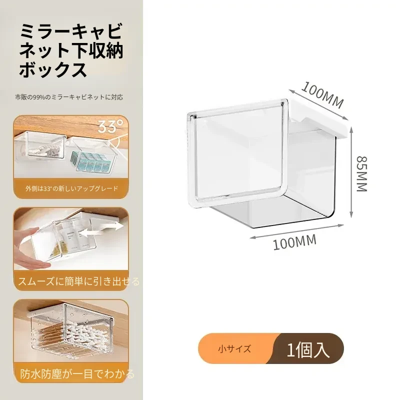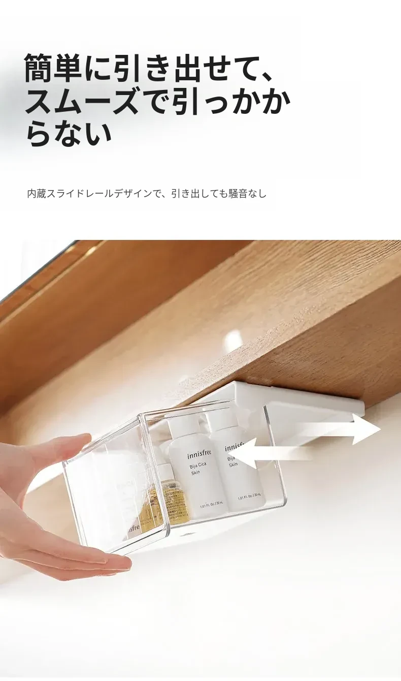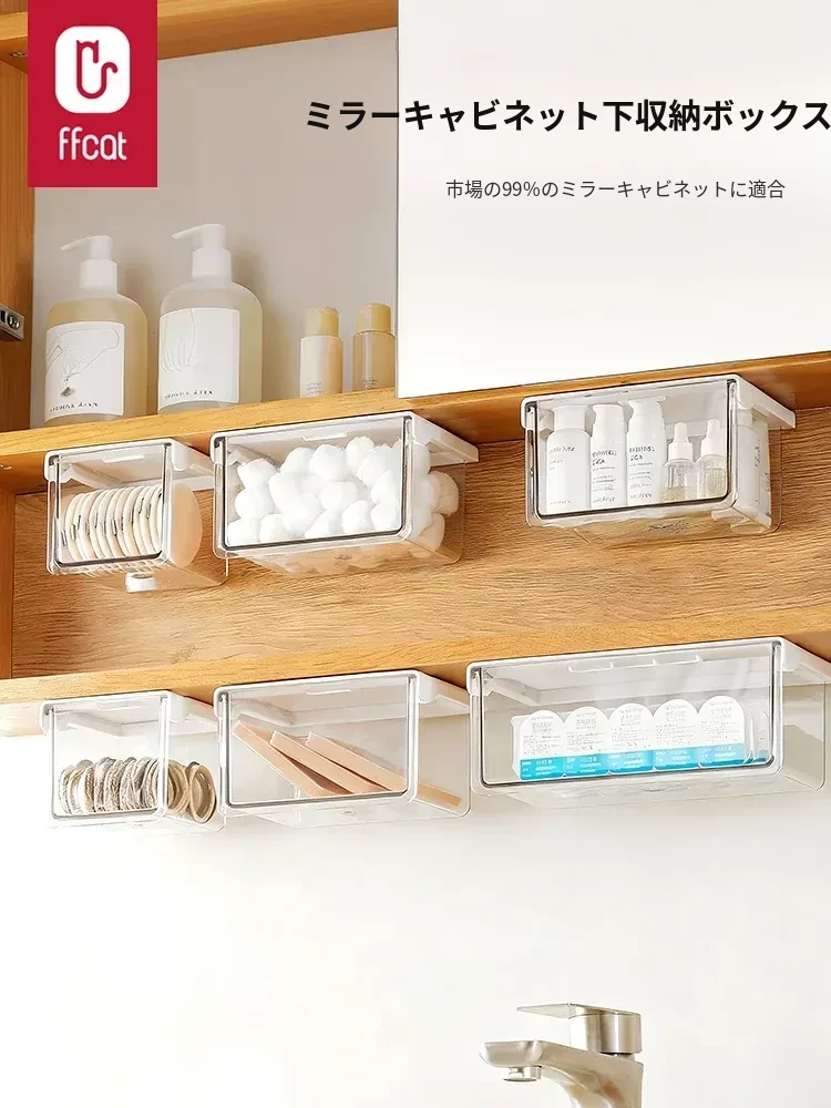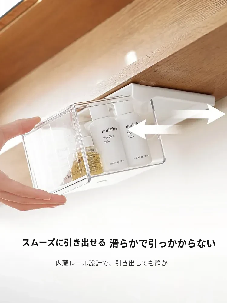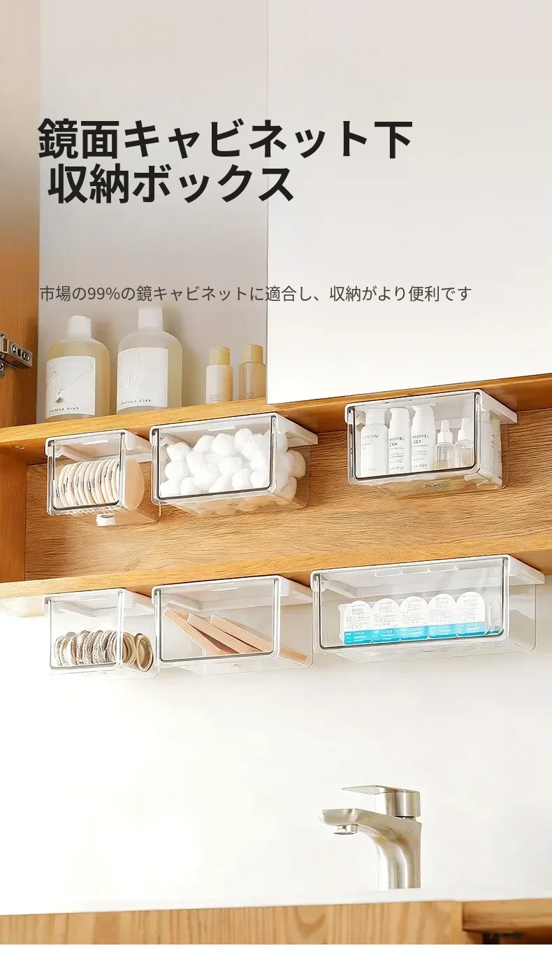 鏡台下の引き出し式収納ボックス - バスルームや化粧室に最適な透明な壁掛け収納、化粧品やクレンジング、綿棒、口紅をすっきり整理!あなたの美しさを引き立てるアイテムです!