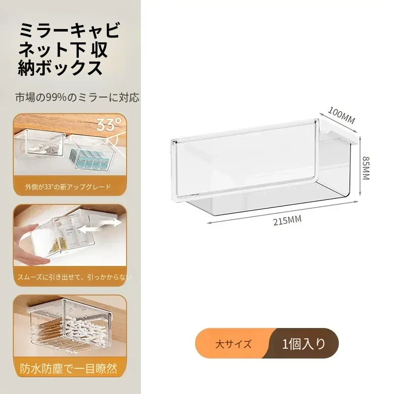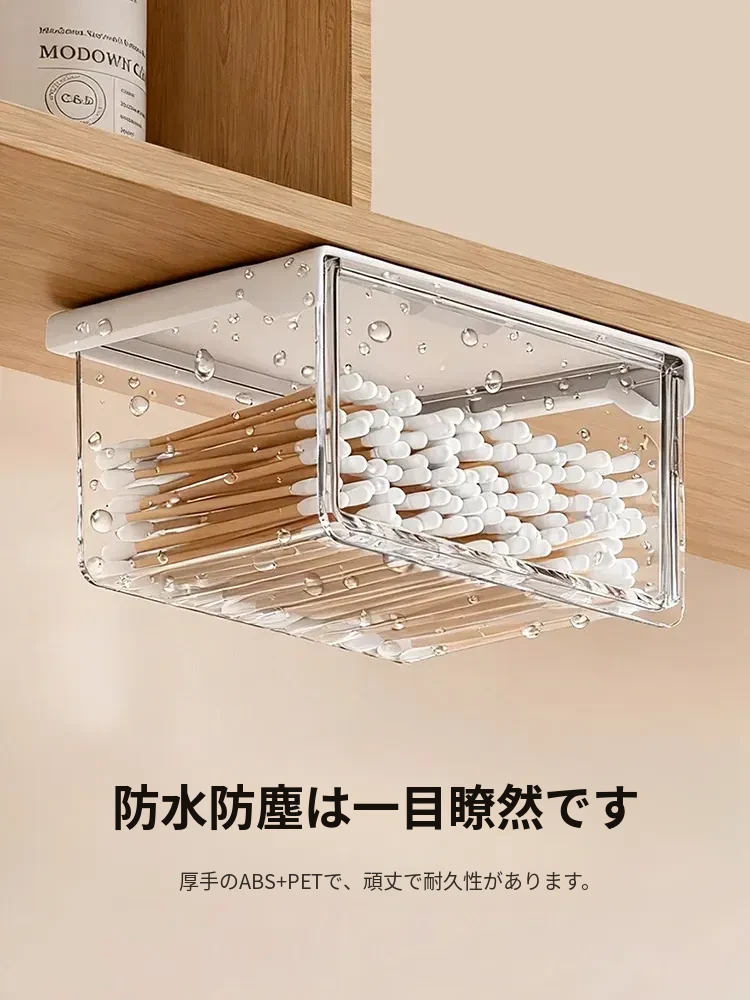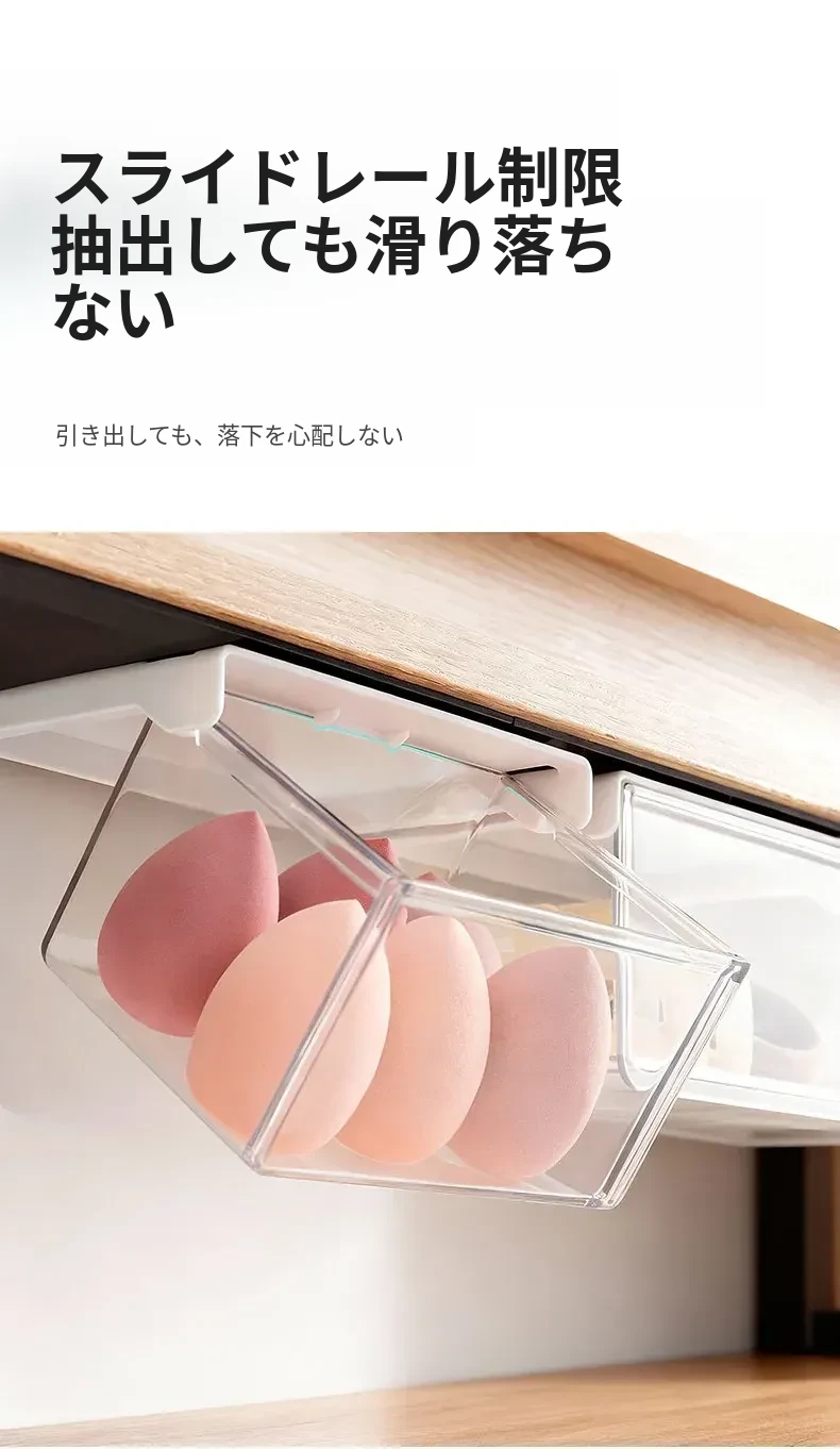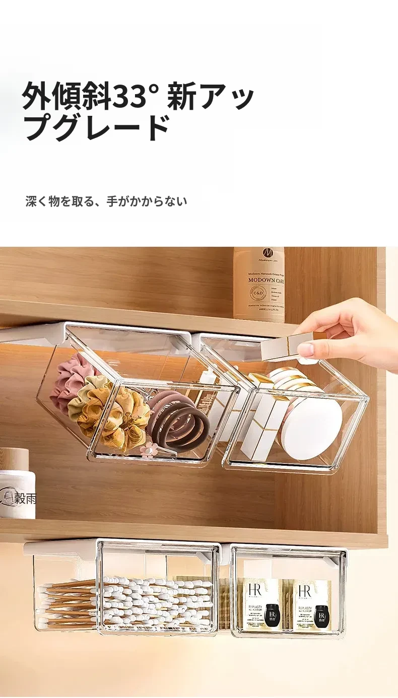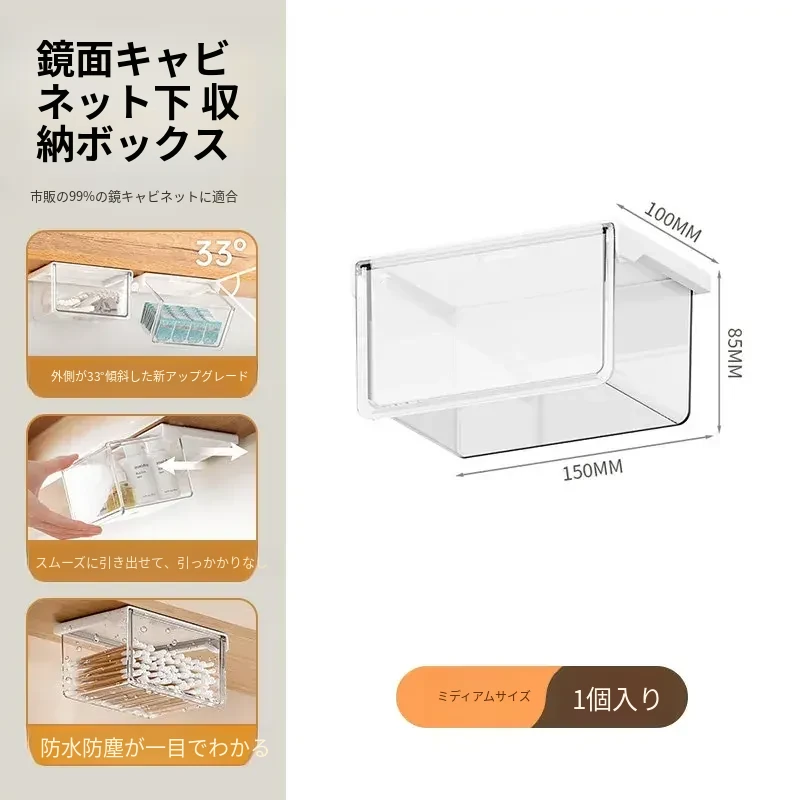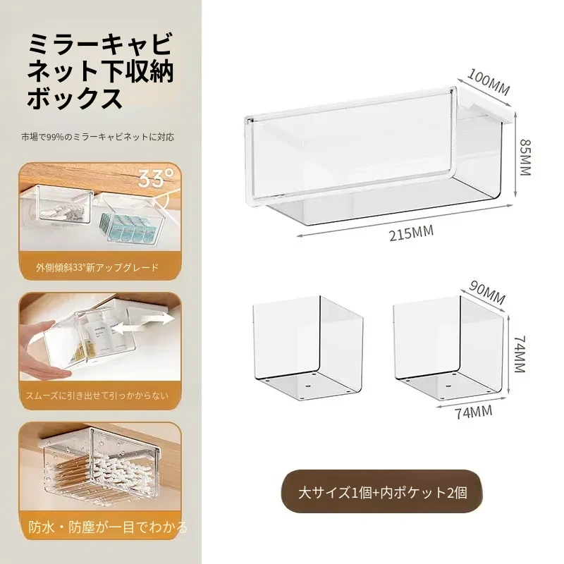 鏡台下の引き出し式収納ボックス - バスルームや化粧室に最適な透明な壁掛け収納、化粧品やクレンジング、綿棒、口紅をすっきり整理!あなたの美しさを引き立てるアイテムです!