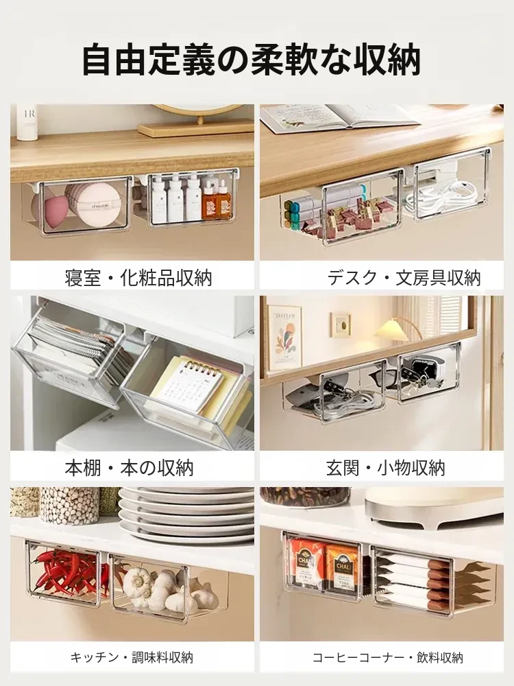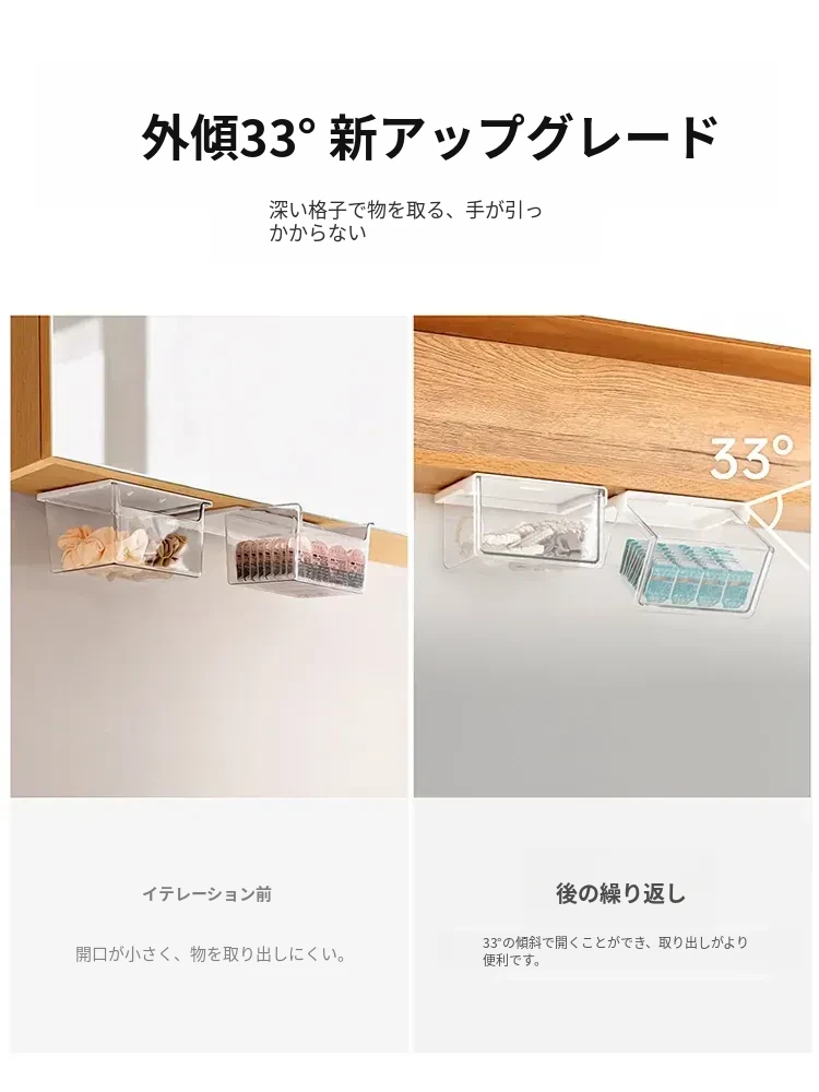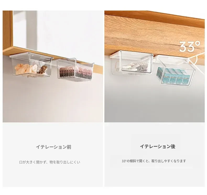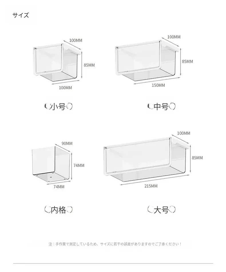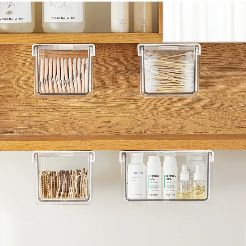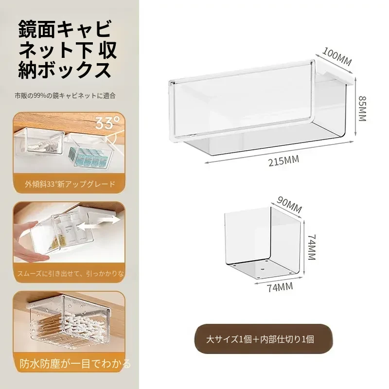 鏡台下の引き出し式収納ボックス - バスルームや化粧室に最適な透明な壁掛け収納、化粧品やクレンジング、綿棒、口紅をすっきり整理!あなたの美しさを引き立てるアイテムです!