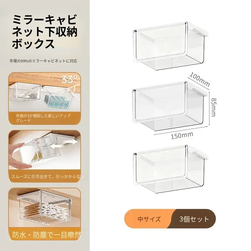 【中号●3個セット】キャビネット下収納ボックス⭐取り出しやすい 防水・防塵