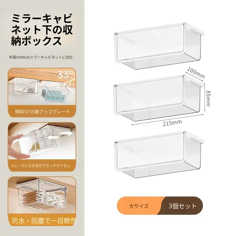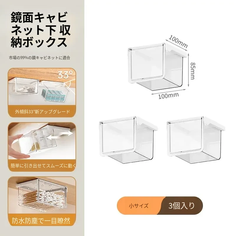 【小号●3個セット】キャビネット下収納ボックス⭐取り出しやすい 防水・防塵