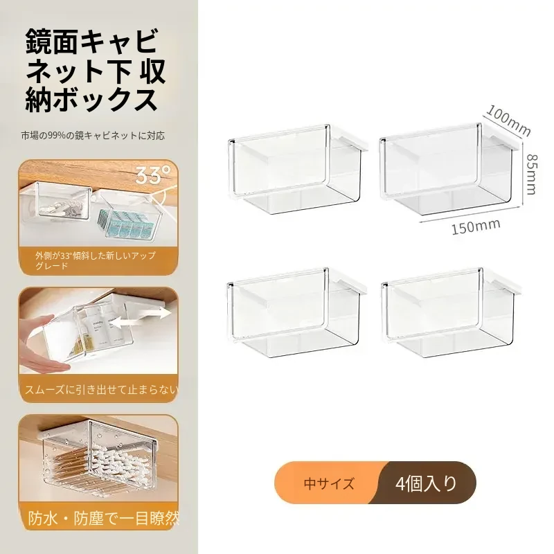 【中号●4個セット】キャビネット下収納ボックス⭐取り出しやすい 防水・防塵