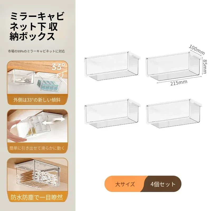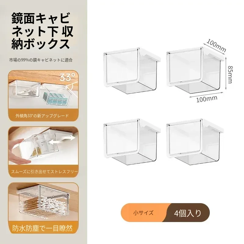 【小号●4個セット】キャビネット下収納ボックス⭐取り出しやすい 防水・防塵