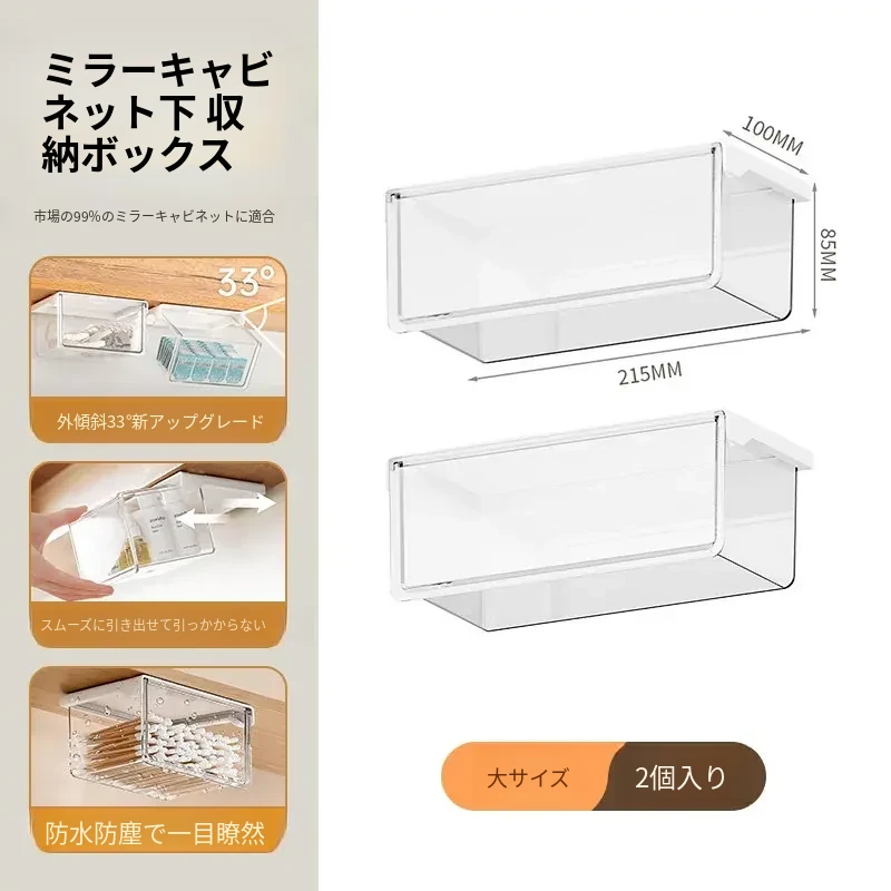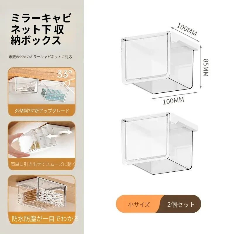 【小号●2個セット】キャビネット下収納ボックス⭐取り出しやすい 防水・防塵