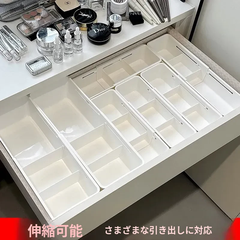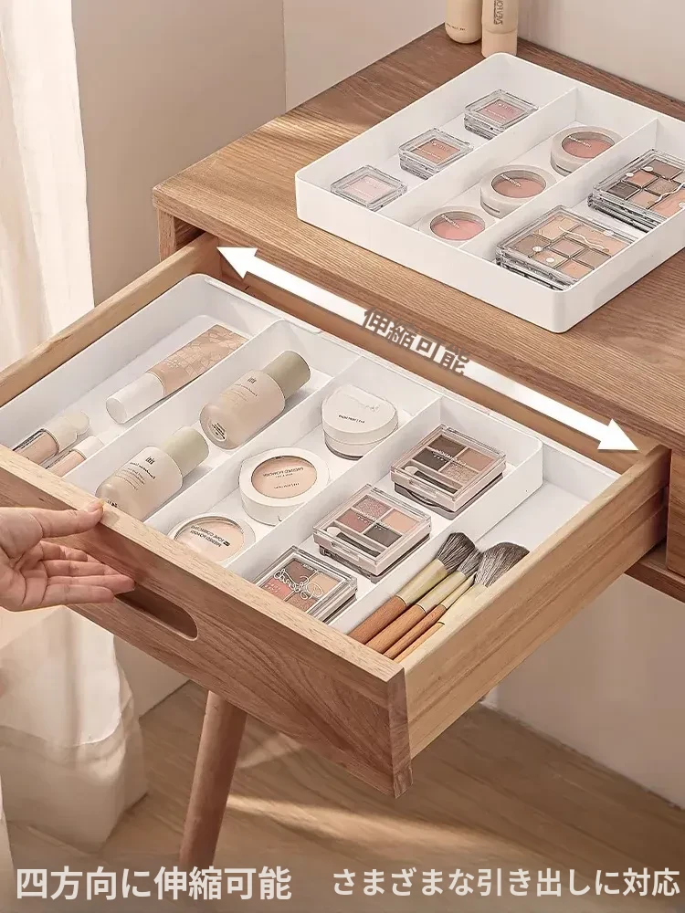 引き出し内仕切り収納ボックス|伸縮可能な化粧品・文房具分類|ドレッサーや深いキャビネットに最適|寮生活にも便利!整理整頓でスッキリした空間を実現!